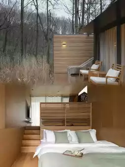 - Room Features: The guest rooms are distributed in 14 independent cabins, built according to the undulating mountain terrain in the forest, scattered and well-arranged. Each cabin retains a native tree, forming its own courtyard in the house, and some room types are also equipped with slides 🎢.