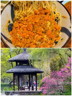🗳Xixi Wetland: The wetland teems with spring life, lush vegetation, and abundant birds. Take a paddle boat through the crisscrossing waterways, viewing the tree-lined banks and wildflowers, experiencing nature's vitality. Visit Hezhu Street to taste local snacks like water chestnut cake and fried dough twists, buy handicrafts, and experience water town culture.