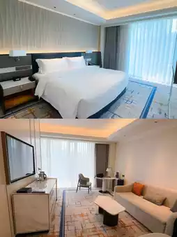 The Azure Qiantang, a Luxury Collection Hotel, Hangzhou, is a luxury brand under Marriott, on par with The Ritz-Carlton and St. Regis. It boasts a prime location on the banks of the Qiantang River, adjacent to Qianjiang New City, MixC, and Raffles City. With convenient transportation, it is 8 km from West Lake, 10 km from Hangzhou East Railway Station, and less than 30 minutes from the airport.
