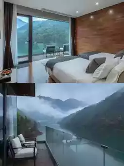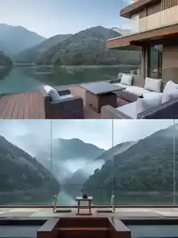 The river view room offers an ink painting view right outside the window—clouds winding around the mountainside 🖼️