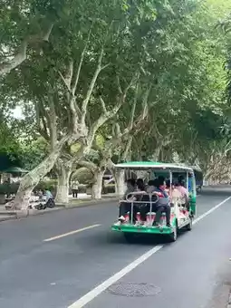 Climb the Leifeng Pagoda, entrance ticket is CNY 40 💰, and take the elevator directly to the top of the pagoda. You can enjoy a panoramic view of West Lake, which is breathtaking. At the foot of the pagoda, the West Lake sightseeing bus is waiting for you to start your journey. Green/blue bus is CNY 10/stop, wooden bus is CNY 20/stop. Choose your comfortable journey.