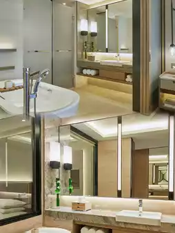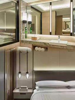 📌Hotel Environment: Stepping into the Hangzhou Marriott Hotel Qianjiang is like stepping into a flowing painting. The hotel's exterior is modern and elegant, while the interior decoration exudes luxury and refinement. The lobby is spacious and bright, with a giant crystal chandelier in the center resembling sparkling stars, inviting guests to pause and admire. Inside the guest rooms, every detail reveals the designer's ingenuity, from the soft bedding to the exquisite furniture, creating a warm and comfortable home-like atmosphere.
