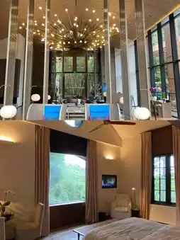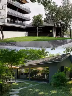 🏊♀️ The hotel's public areas are uniquely designed. The pool reflects the sky, making it a perfect photo spot. The infinity pool hidden in the woods offers a tranquil environment. After a swim, you can relax on a lounge chair. The library and tea room have a peaceful atmosphere, ideal for reading and relaxation.📚