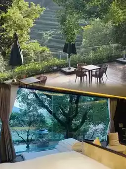 - Room Amenities: Each room has a poetic name, such as "Stepping on Snow" and "Embracing the Moon". The rooms are exquisitely decorated, some with oversized floor-to-ceiling windows offering views of the tea mountains or the mountain scenery. Other design features include full-length glass windows and wood-veneer bedside lamps. The bathrooms are uniquely designed🛏️.