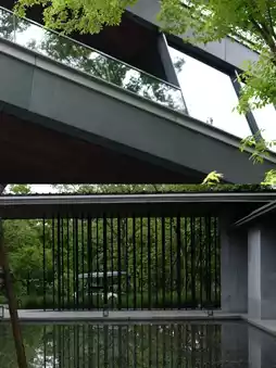 "Balance of Wild and Luxury": Preserving the wetland's original persimmon trees, reed marshes, and waterways, while using concrete, natural wood, and glass in geometric lines to create modern aesthetics that "blend with nature."
