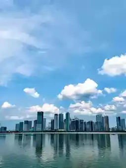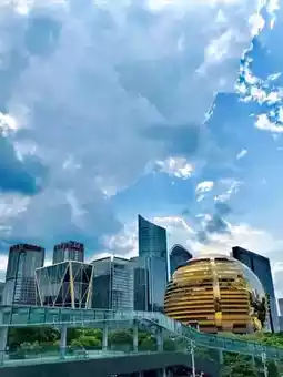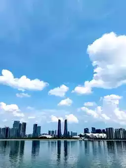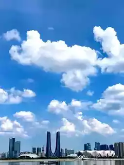 Today's crystal-clear sky is exceptionally transparent, and despite the heat, it makes you want to go outside. Qianjiang New City is undoubtedly the best place to experience this city's charm. Taking an invigorating city walk here allows you to exercise while enjoying beautiful scenery. However, the summer sun is intense, so remember to protect yourself from the sun when going out, especially at noon, which is actually the best time to appreciate the crystal-clear sky.