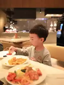 For lunch, we had Cantonese dim sum buffet at the Chinese restaurant. So many choices! The shrimp dumplings were filled with bouncy shrimp, and the red rice sausage was crispy and juicy... The most amazing was the durian swan pastry with its rich durian flavor—my child and I fought over it! Everything is made to order with unlimited servings, perfect for families with children.