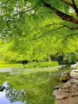 The weeping willows of Liulang Wenying gently brush the lake, reflecting the blue waves, forming a moving picture. The lake is sparkling, with koi swimming through it, and egrets skimming over the water, leaving poetic ripples. Mandarin ducks play in the reeds, the warm sun shines down, and the fragrance of flowers fills the air. Every step feels like walking in a painting.