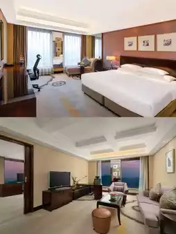 🌁Decoration style: Stepping into the hotel, European elegance and modern luxury are intertwined. The high dome of the lobby is decorated with crystal chandeliers, and the marble floor reflects the colorful light. The guest rooms are decorated in warm gold and beige, with leather sofas and carved furniture showing the style. Chinese ink paintings and silk decorative paintings inject the charm of Jiangnan into the space. The collision of classic and fashion creates a unique beauty.