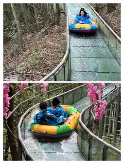The glass tunnel rafting in the forest is amazing! Plunging down from the top of the mountain, the splashing water at the bends is super decompressing. The parent-child double rafting is also very stable, and even children can scream with excitement!