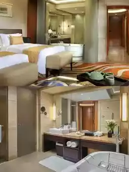 The hotel has 384 rooms, ranging from 55–420 square meters, offering plenty of space. The rooms are designed with simple elegance and style. The soft and skin-friendly bedding makes you want to stay in bed forever. There are also floor-to-ceiling windows with great views. The river-view rooms offer superb views of the sparkling Qiantang River during the day, and the light show and musical fountain in Qianjiang New City at night, creating a romantic and pleasant atmosphere.