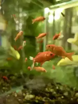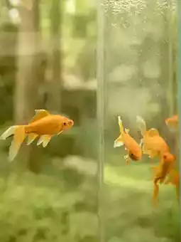 With the reflection of the water and glass, the goldfish seem to be swimming freely in an "underwater forest" 🌲.