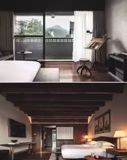 The hotel was designed by designer Fang Lingjia, continuing the simple architectural style of ancient Hangzhou, with logs as the keynote, matched with simple wooden furniture and warm lighting, creating an oriental aesthetic space of "great hermit in the city". The three-story building is hidden among the trees, and the courtyard is full of different scenery. The tea room, reading room, and outdoor garden are cleverly connected. The light and shadow flow shows the gentle beauty of Jiangnan.