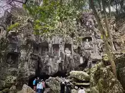 Before entering Lingyin Temple, tourists first pass through the Feilai Peak Scenic Area. Along the way, there are cliff carvings from the Song and Yuan dynasties. The knife marks are delicate, the Buddha statues are lifelike, and it is a very large group of stone carvings. Among them, the smiling Maitreya Buddha is particularly eye-catching. Tourists strolling in the ancient forest can feel a moment of tranquility and comfort.