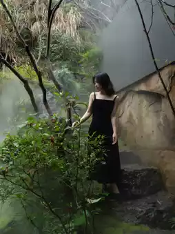 The moss on the stone steps resembles a spilled palette, layers of emerald blending with pale yellow. At dawn, the steward weaves through with a spray of mountain spring water, droplets rolling over the moss like crystal coating jade. One day, I spotted a linen-clad girl crouching to take photos, her hair spilling into the moss carpet—was she observing the moss, or was the moss observing her?