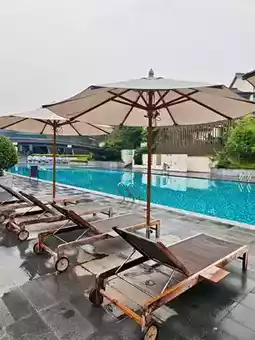 Nad Thai Spa blends traditional Thai massage with Tianmushan's hot springs. Post-stone therapy, wander mountain trails to nature's symphony. Floating afternoon tea on bamboo trays by the pool makes insta-worthy magazine covers. Evenings bring tea ceremonies in the lobby lounge, with singing bowl vibrations and moonlit eaves melting all tension away.