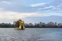 After leaving Shaoxing, I headed straight to Hangzhou. Upon arriving by West Lake, I couldn't help but marvel—the books weren't lying when they described this place as "scenic and heavenly." It was also in Hangzhou that I first learned cars would yield to pedestrians at crosswalks. I chose to take a boat tour of West Lake one evening. The guide's commentary flowed, but all I retained were the phrases "Broken Bridge isn't broken, Long Bridge isn't long, Solitary Hill isn't lonely." Still, I found the names of West Lake's Ten Scenes utterly poetic: Three Pools Mirroring the Moon, Spring Dawn at Su Causeway, Autumn Moon over the Calm Lake, Melting Snow on Broken Bridge, Viewing Fish at Flower Pond, Leifeng Pagoda in the Sunset Glow, and more. Perhaps I should return on a sunnier day.