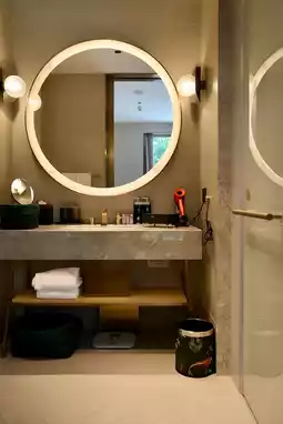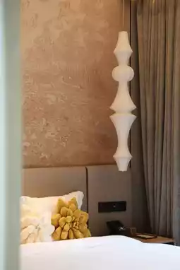 In the guest rooms of Indigo Tianmu Mountain, experience a private dialogue about texture. Soft tones fill the space, while uniquely designed chairs and floral cushions add charm to moments of relaxation. The bathroom is meticulously organized, and the living room and tea break area reveal thoughtful details. Every corner tells a story of leisurely travel, quietly embedding the poetic essence of the mountains into this cozy haven.