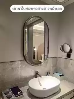 🪞 The mirror by the outside sink can be lit up for putting on makeup. There's also a full-length mirror for taking selfies in front of the mirror before leaving the room. There's an outside sink with separate wet and dry zones. This is great because when you go with friends, you don't have to wait in line to use the bathroom.
