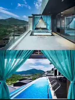 1. **Mountain View Suite**: One bedroom, one living room, private balcony, and a personal hot spring pool—fully equipped with smart toilet and kitchenware. Perfect for couples or friends!