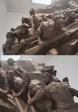 The sculpture "The Hard Struggle" doesn't focus on heroic role models but rather captures the collective spirit and character of countless ordinary yet great people.