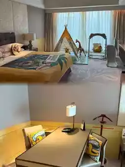 👨👩👧👦 Family members, staying at Shangri-La Hangzhou Kerry Center with kids is a full experience! They offer two types of family rooms: City Family Room (43㎡) and Themed Family Room (78㎡). At check-in, the front desk said we could upgrade directly to a themed family room, which meant no waiting for cleaning and enjoying executive privileges—so we went for it! Unexpectedly, there are three themed family rooms. When showing the pictures to the baby to choose, the little one was so conflicted. The front desk lady was super patient and even let us take the baby to see the rooms in person to choose—so thoughtful!