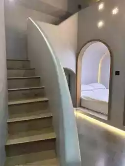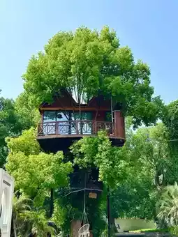 The treehouse room feels like stepping into a fairytale! Wooden stairs lead to a treehouse balcony ✨
