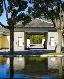 Nestled within Huang Gongwang Forest Park in Fuyang, the resort is surrounded by mountains on three sides and faces a river. Driving in through a stunning tree-lined road instantly makes you feel secluded. Our villa overlooked vast tea fields, and waking up to misty mountain views at dawn was breathtaking!