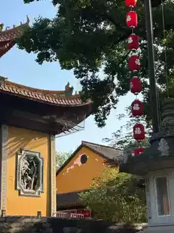 Inside the temple grounds, incense drifted gently through the courtyards, curling around statues of serene Buddhas and weathered stone lanterns 🕯️🧘♂️🍂. Visitors bowed in silence, lit joss sticks, or simply sat beneath the old ginkgo trees, letting the rhythm of the place quiet their thoughts. Across the lake, Leifeng Pagoda shimmered in the distance, another thread in the tapestry of West Lake’s legends. Jingci Temple didn’t call attention to itself it offered a quiet refuge, where sound, space, and spirit came together in balance, inviting you to release and reflect 🕊️🙏🌅.