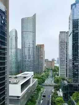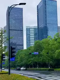 We arrived in Qianjiang New Town just as the city came into focus under the rising sun, its skyline glowing across the Qiantang River 🌇🌊🏙️. Towering skyscrapers—shimmering glass and steel rose beside open plazas and landscaped green spaces. The atmosphere felt fresh and intentional, with wide boulevards lined by cherry and ginkgo trees, public art installations by the water, and the hutong‑style bridges connecting cultural venues. Everything felt arranged not crowded, but flowing. We walked toward the riverbank, listening to the distant hum of traffic, the murmur of fellow walkers, and the soft lap of water against the promenade.