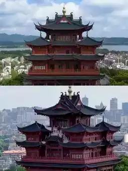 - Jianghu Huiguan Pavilion: The highest point of Wushan, offering a 360° panoramic view of Hangzhou, with Chenghuang Pavilion visible in the distance.
