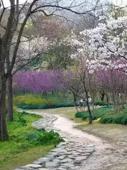 For transportation, if you're visiting Leifeng Pagoda, you can call a DiDi to take you directly to Wuguitan. I visited at the end of March, around the 27th-28th, and the flowers were in full bloom and absolutely beautiful.