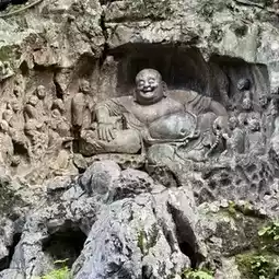Next, we took another Didi to #lingyintemple, one of the most important Buddhist temples in China. We explored the sacred halls and the surrounding grottoes, making sure not to miss the Smiling Buddha carved into the rock.