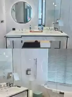 The room has only been around for a short time, but there are quite a few signs of wear, like the sink, throw pillows, and edges of the mirror. What affects the appearance the most is the clump of sheer curtain fabric hanging down after being pulled up; it feels like it could be tidied up. As for facilities, there’s a Bluetooth speaker with fixed volume, not very loud. I forgot to use the screen casting, so not sure if it works. The overall decor feels like a mix of Shenzhen Park Hyatt and Hefei Grand Hyatt (though Hangzhou Park Hyatt opened earlier), nothing particularly memorable.