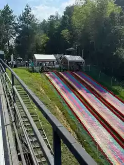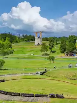 Cold Spring Bay water play → Miyazaki-style grassland → Jungle zipline → New Zealand scooter → Rainbow slide (no backtracking!)