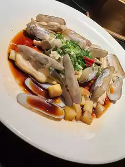 The braised yellow croaker, braised bean noodles with sand garlic, razor clams, and chopped pepper Qiandao Lake white fish were all delicious. I highly recommend them! 👍