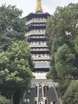 Leifeng Pagoda, located beside West Lake in Hangzhou, is a must-see for tourists. Although the original site of the Pagoda has been destroyed by war, a new pagoda has been erected. Inside, you can see the remains of the Pagoda, still as magnificent as they once were. Take the elevator to the upper floors of the pagoda for breathtaking views of West Lake and the surrounding green mountains and waters, a truly moving and unforgettable experience.