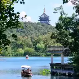 I recommend avoiding festivals, as it can get very crowded. Cycling around the lake, or combining walking and boating, is a relaxing experience. There are bridges and a ferry ride to the temple. This is another must-see spot in Hangzhou.