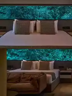 ▪️Hangzhou’s version of "Atlantis" confirmed! The lobby and secret suite feature giant aquarium walls, tropical fish all airlifted from Sanya, you can watch fish swim right from your bed—amazing!
