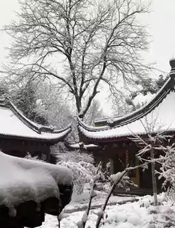 1. Square in front of the Mahavira Hall: capture ginkgo leaves falling with snow