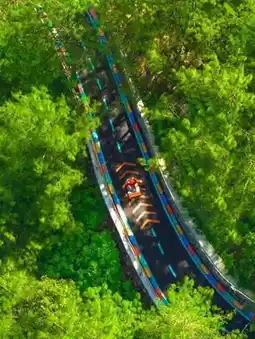 Built on the edge of a cliff, the 2.5-kilometer track is a paradise for “autumn adventurers”! During the 360° spins, the valley painted in fall colors unfolds before your eyes, your heartbeat syncing with the autumn wind, screams and laughter intertwining. There are no restraints here, only freedom and thrill—just like the autumn mountain breeze, wild yet gentle.