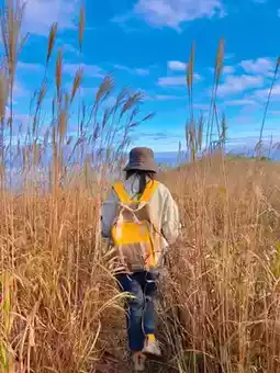 These are not reeds, but the cooler and more elegant silvergrass! The entire hillside is covered with a fluffy golden carpet, and when the wind blows, it looks like waves rolling 🌊. Every snapshot looks like an artistic masterpiece, creating an immersive atmosphere!
