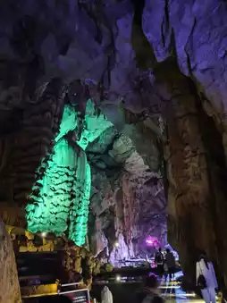 2⃣ Colorful lights shine on the stalactites, with red/blue/purple light effects intertwined. Every shot looks like a magical movie scene.