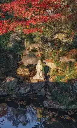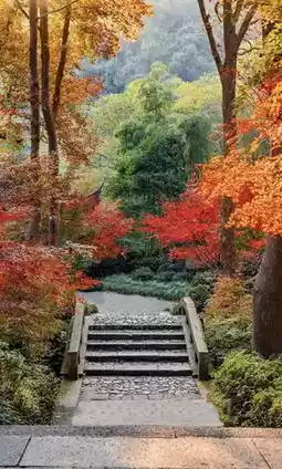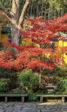 There is no noise, only the ancient temple, colorful leaves, and the fragrance of tea.