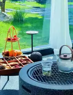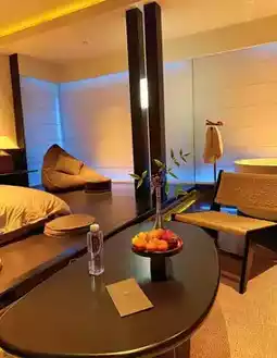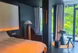 🍄 Room: The design is very stylish, with a black theme paired with warm yellow lighting, Marshall speakers, a capsule coffee machine, and an automatic toilet—all you could want. The herbal toiletries in the bathroom smell incredibly soothing. They thoughtfully provide yoga mats, a mini bar with free drinks, and you can brew Longjing tea with spring water—it's pure enjoyment.