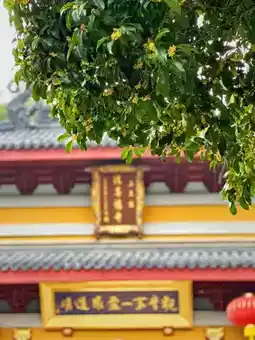 The osmanthus outside the mountain gate and the Hall of Heavenly Kings creates a fully classical ambiance.