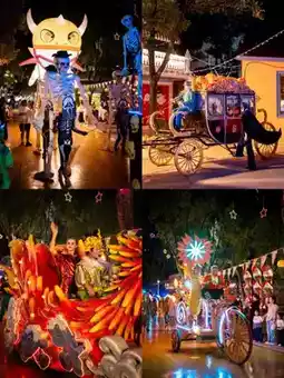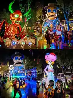 A Halloween-themed evening parade, with energetic performers comparable to Disneyland.