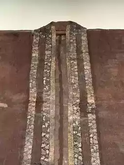 The most striking piece of clothing is the last photo, showcasing the understated luxury of the Song Dynasty. Gold was beaten into thin sheets and then glued onto the garment using a gilding technique. It was the first time I'd actually seen gold applied to clothing. I'd only heard of embroidery using gold and silver thread, but I never imagined it would be real.
