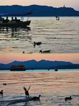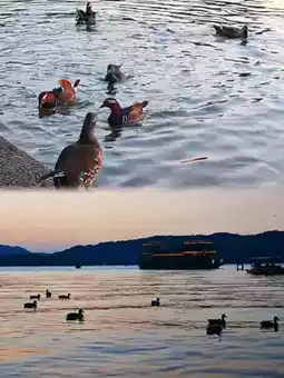 When you come to West Lake in Hangzhou, if you ask where is the most convenient place to enjoy the sunset, Hubin No.1 Park is definitely the top choice. Not only does it offer stunning sunset views, but it also hides a delightful "surprise" — flocks of playful mandarin ducks and ducks that often make many visitors forget to watch the sunset, completely captivated by these adorable little creatures!
