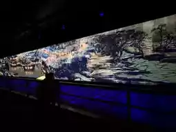 Later, we went to the Light and Shadow Forest. The entire space was bathed in blue light, like a dream. Thin strands of light cascaded down from the ceiling, shimmering like rain, and a vast sea of white flowers spread across the ground. As my sister walked in, she whispered, "It's like I've stepped into the world of Frozen." My brother's eyes widened, "Are there elves here?" The scene was truly surreal, captivating even the adults.